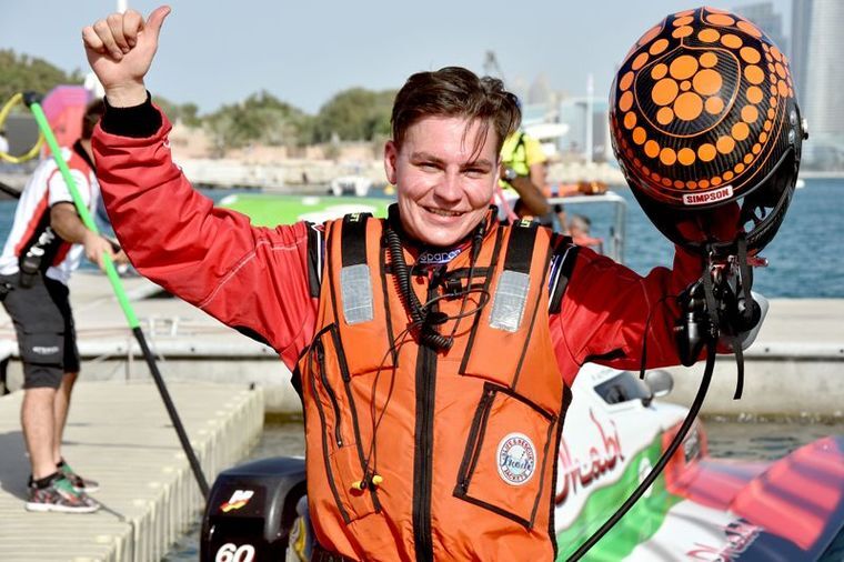 The remarkable incident involving Team Abu Dhabi's Al Mehairbi and Mad Croc Racing's Ferdinand Zandbergen happened just seconds after the start, the two coming together, Al Mehairbi going over and Zandbergen almost following suit. Out came the yellow flag, but incredibly both boats were able to continue, a missing engine cover the sum total of the damage.