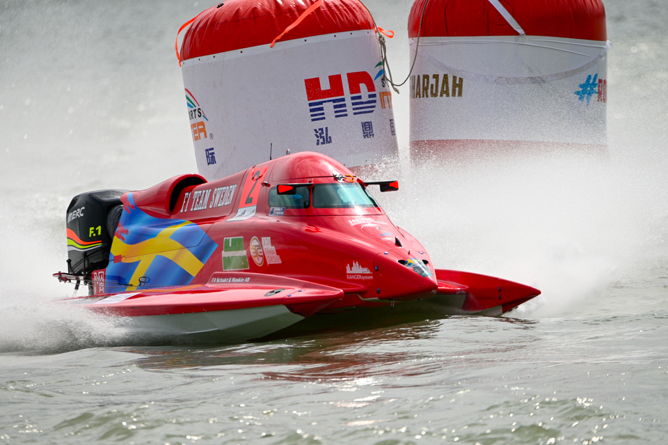Friday, October 3: Team Sweden’s Jonas Andersson climbed from third at the start to secure victory for Team Sweden in the opening 18-lap Sprint race at the UIM F1H2O Grand Prix of Shanghai, China on the Huangpu River on Friday afternoon.