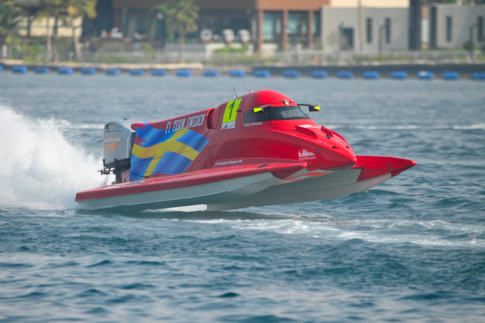Friday, November 28: The defending three-time World Champion Jonas Andersson dominated a yellow flag-interrupted second Sprint race for the UIM F1H2O Grand Prix of Jeddah at the North Obhur Waterfront on Friday afternoon.