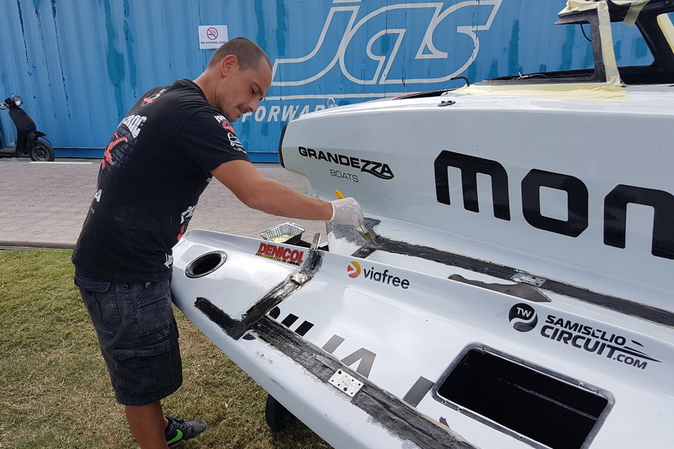 The race is now on for his team, particularly Massimo Roggiero and Roberto Moliterno, to have the boat which Selio went over in in qualifying ready in time for technical scrutineering which starts at 10.00hrs tomorrow morning. “The last few races have given us plenty of work to do,” Roggiero said. “This kind of repair is not really too much of a problem, we have a couple of broken frames inside to fix, some deck work, tidy up the canopy and then the boat will be ready to race.”
