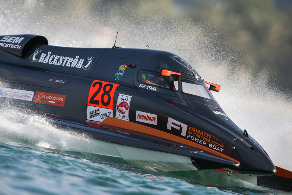 Thursday, 8 December, ABU DHABI (UAE): Team Sweden’s Jonas Andersson delivered a fantastic final lap in today’s BRM Official Qualifying five-boat shootout to snatch pole Position for tomorrow’s UIM F1H2O Grand Prix of Abu Dhabi from Emirates Racing’s Erik Stark.