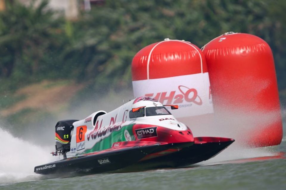 Thursday, 1 October, LIUZHOU (China): Alex Carella was the pace setter in this morning's official practice session posting a time of 46.08s around the 2000 metre six-pin course on the River Liu, with Abu Dhabi teammate Thani Al Qamzi very much in touch with 46.33s. "This is a lucky circuit for me, hopefully again," said Carella. "Everything was OK and yes this is just free practice but is important to get a feel for this afternoon. I didn't make many laps but the set-up is good and I know what propeller is good for this circuit for sure. Pole is the target."