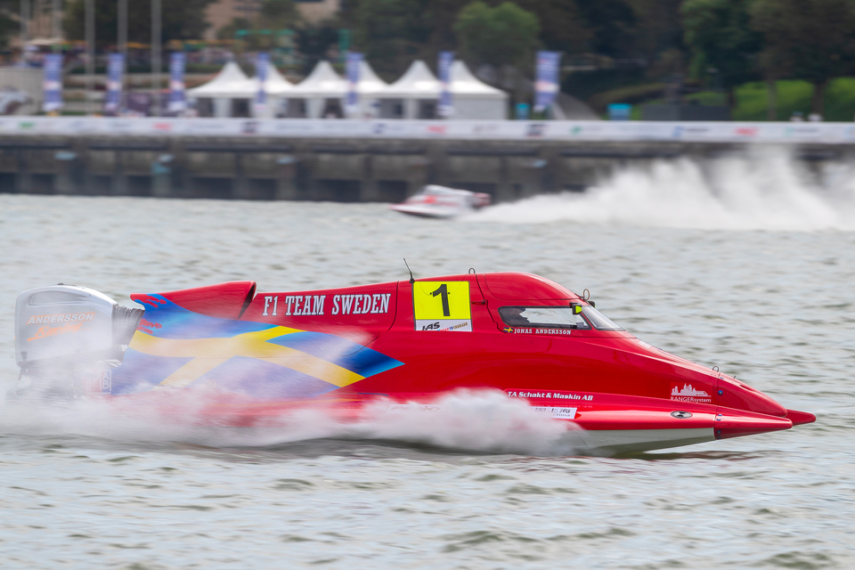Thursday, October 2: Seventeen of the 20 racers took advantage of the second free practice session for this weekend’s UIM F1H2O Grand Prix of Shanghai, China and Team Sweden’s Jonas Andersson topped the times in the one-hour stint on Thursday lunchtime.